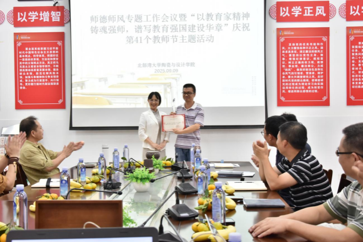 教师节前夕,2025年9月9日下午,学院在3-301会议室召开2025年全体教职工师德师风专题工作会议,开展庆祝41个教师节主题活动。2025年教师节主题是“以教育家精神铸魂强师,谱写教育强国建设华章”,会议向全体教师致以节日的诚挚祝福,号召大家弘扬优良师德师风,共同推进学院各项事业高质量发展。学院全体教职工参加会议,会议由学院党委书记古雅峰主持。