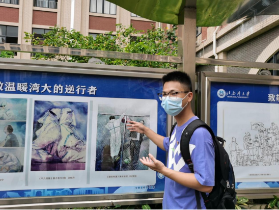 为弘扬抗疫精神、讴歌在疫情前线奋战的志愿者,心手相牵、众志成城,全力打赢疫情防控阻击战,落实疫情防控常态化管理措施。疫情期间,学院组织全体师生特别是党员开展了“助力钦州抗疫,湾大学子先行”美术作品征集活动,并在校园内进行了展出。