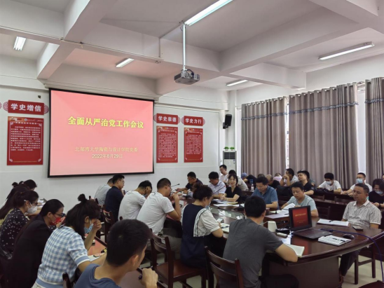 8月29日下午,在3-301会议室,学院召开了秋季学期第一次全面从严治党工作会议。全体教师党员参加会议,部分骨干教师列席会议,党委书记古雅峰同志主持。