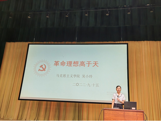 “革命理想高于天,理想信念之火一经点燃就会产生巨大的精神力量。”马克思主义学院教师、广西党史专家吴小玲教授以《革命理想高于天》为题,讲述黄日葵,陈岸、钟竹筠、张世聪等一大批英雄儿女在中国共产党的领导下英勇不屈、积极投身于波澜壮阔革命斗争的故事。她结合学校历史,指出北部湾大学办学源头之——钦州民族师范学校是当时钦州(钦县)第一个党支部成立地,红色基因深深融入学校的精神血脉。她说,无论过去、现在和将来,青年人都要有崇高的理想信念。在全面建设社会主义现代化国家新征程中,青年人要坚定理想信念,在大是大非面前旗帜鲜明,在风浪考验面前无所畏惧,在各种诱惑面前立场坚定,以永不懈怠的精神状态和一往无前的奋斗姿态朝着心中的宏伟目标砥砺前行。