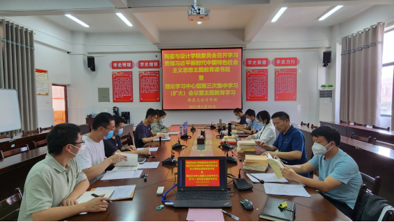 5月18日,陶瓷与设计学院召开学习贯彻习近平新时代中国特色社会主义思想主题教育读书班暨学院党委理论学习中心组第三次集中学习(扩大)会议。学院党委理论学习中心组全体成员参加会议,会议由党委书记古雅峰主持并领学,党政办、学工办主任,各支部书记列席会议。