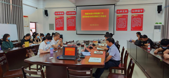 6月5日,陶瓷与设计学院在3号教学楼301会议室召开2023年第二次意识形态和安全稳定工作分析研判会。学院党委委员、各党支部书记、党政办主任、学工办负责人、教研室主任、全体专兼职辅导员和班主任等参加会议。