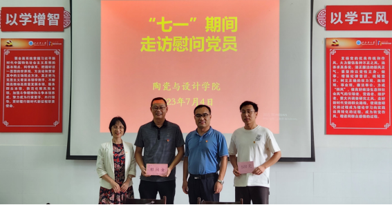 校党委常委、副校长马秀明(右二)慰问陶设学院教师党员代表
