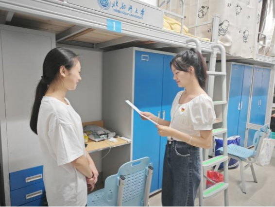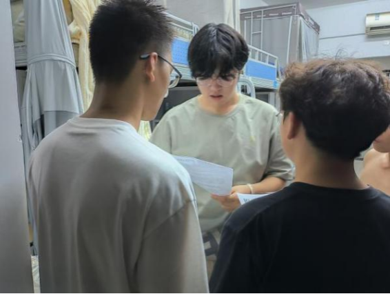 随后,学院学生党支部开展了主题为“党员走寝宣知识,共筑入党初心梦—2024级新生入党启蒙之旅”主题党日活动。党员走进新生宿舍,向新生介绍入党的基本条件、入党的流程、入党申请书的书写要求,为2024级新生答疑解惑。在党员同志的热情讲解下,入党知识不再仅仅是理论文字,而是化作了生动的故事、鲜活的案例,以及贴近学生生活的实践体验,入党知识变得既通俗易懂又充满趣味。学生党员在启发教育过程中用以实际行动诠释了党员的先进性和积极性。