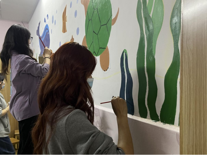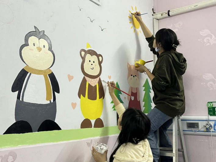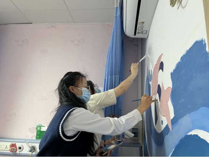 活动中,志愿者们在支部书记张庆峰和辅导员何如玉的带领下,围绕海洋世界等主题开展彩绘,经过齐心协力,六面洋溢着想象和童趣的彩绘墙在医院墙体精彩亮相,为医院营造了温馨宜人的就医环境。志愿者们也在实践中领悟雷锋精神,提升了党团组织凝聚力。