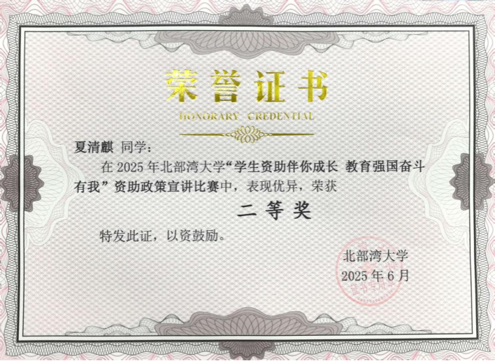 2025年北部湾大学“学生资助伴你成长,教育强国奋斗有我”资助政策宣讲比赛落下帷幕。我院在此次比赛中荣获“优秀组织奖”;我院2024级产品设计专业夏清麒同学在比赛中荣获“二等奖”,辅导员何如玉获“优秀指导老师”。