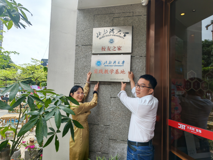 2026年3月19日,北部湾大学陶瓷与设计学院党委书记古雅峰,环境设计专业教师许春辉、李威、邹漫燕,就业专干刘立翔、玉珏莹,带领环设专业学生前往钦州市大不同装饰有限公司开展考察学习,并举行实践教学基地挂牌仪式。