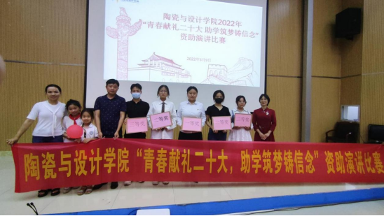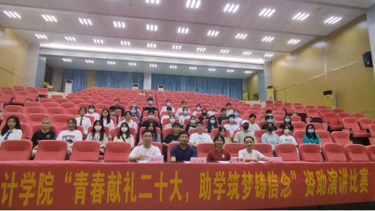 2022年5月9号晚,在三号楼101报告厅,学院举行了“青春献礼二十大、助学筑梦筑信念”资助演讲比赛。学院党委书记古雅峰、党委副书记何志星,辅导员李琼梅老师和鞠洋洋老师参加并担任评委。
