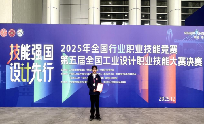 12月12日,2025年全国行业职业技能竞赛暨第五届全国工业设计职业技能大赛在浙江省宁波市圆满落幕。我院设计研241班何国贤同学凭借出色表现,获陶瓷产品设计师赛项学生组二等奖。