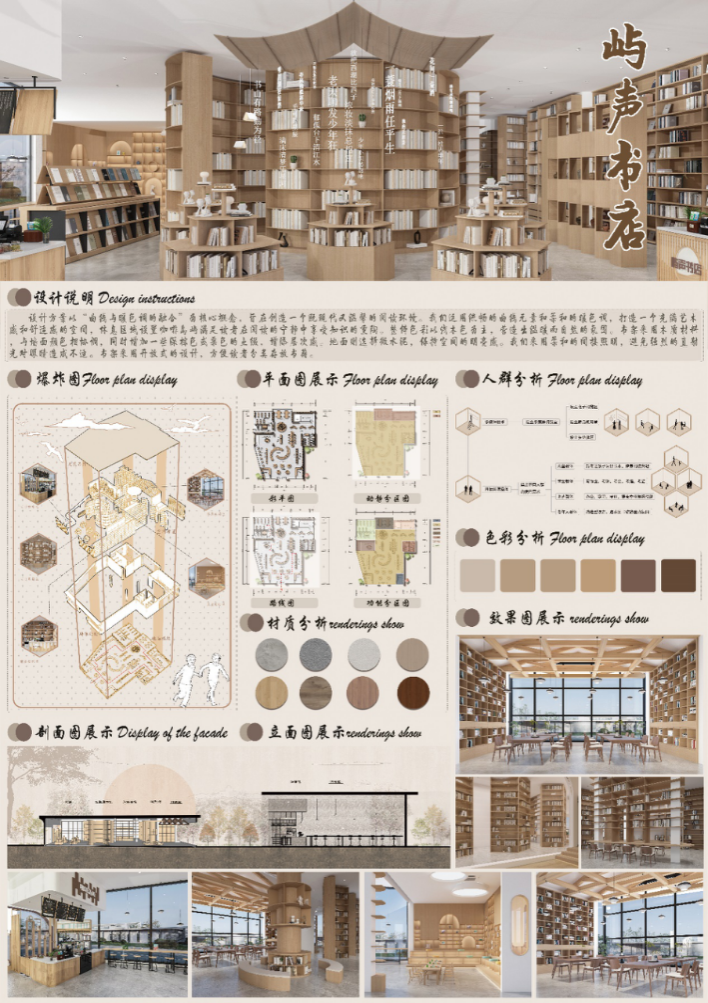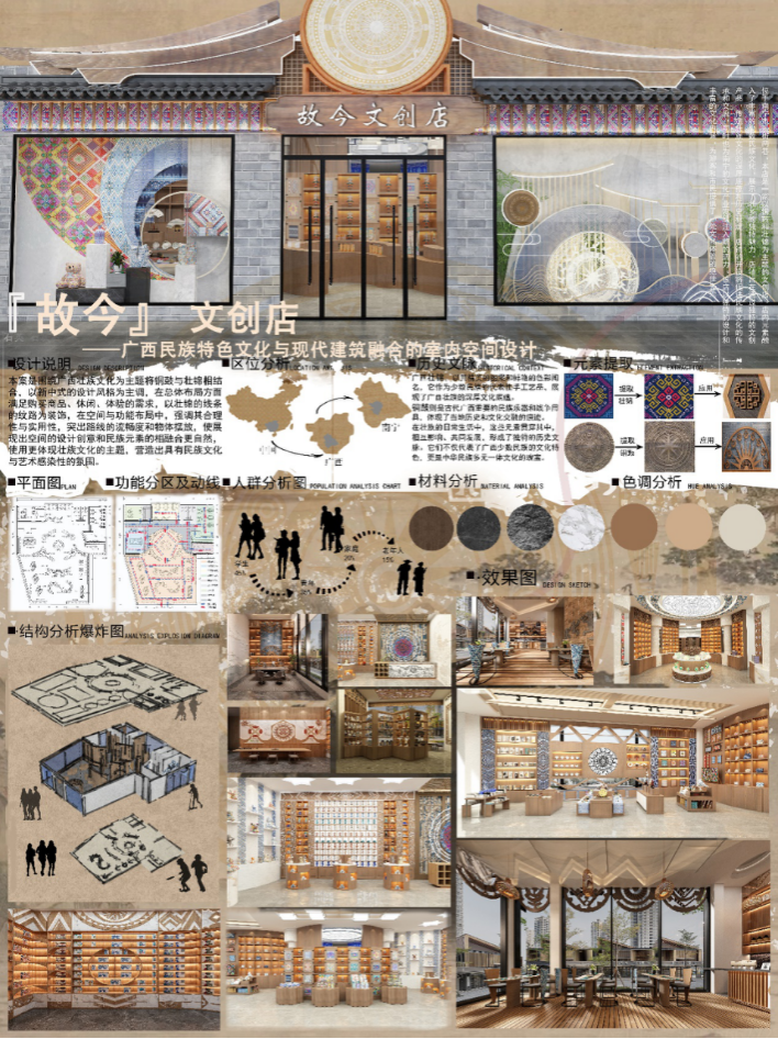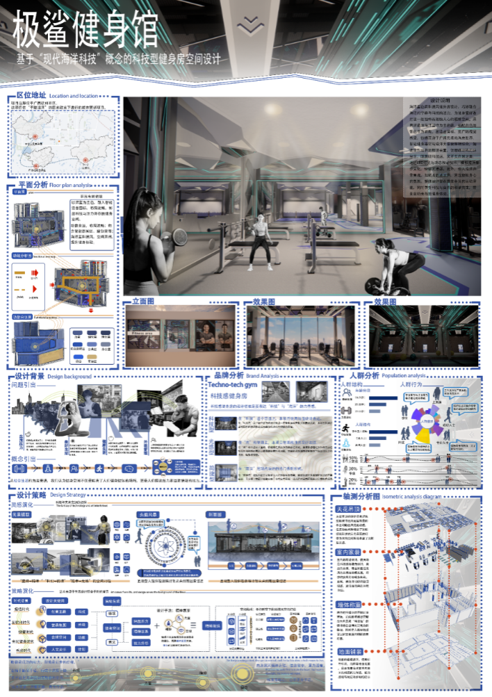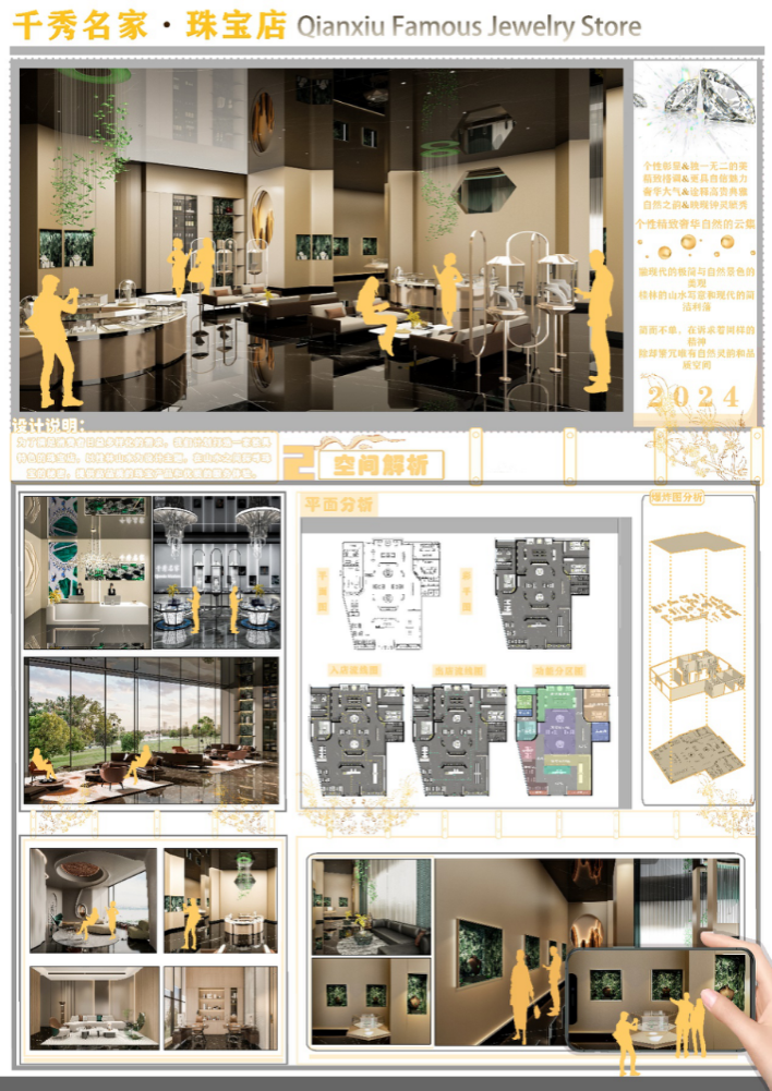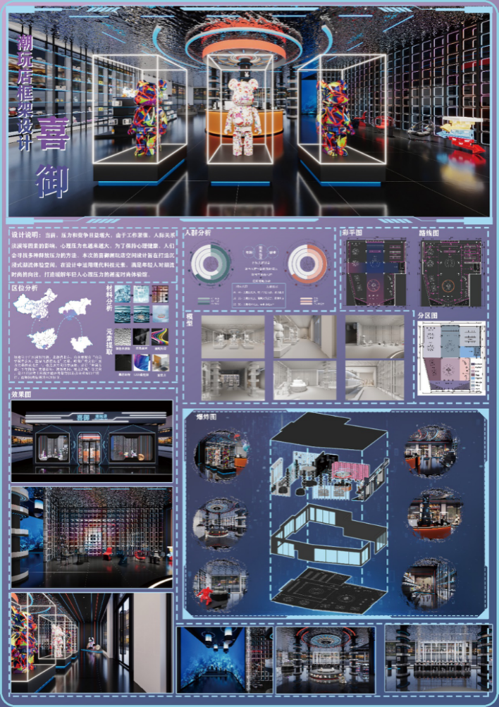 学生在材料选取、色彩运用、空间布局及功能配置等方面下足功夫,巧妙地将设计理念转化更为直观、可感知的三维空间;生动诠释了商业空间设计的精髓。设计作品覆盖了运动空间、餐饮娱乐、文化展览等多种商业形态,充分展现了商业空间设计领域的广泛性和深度。