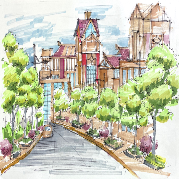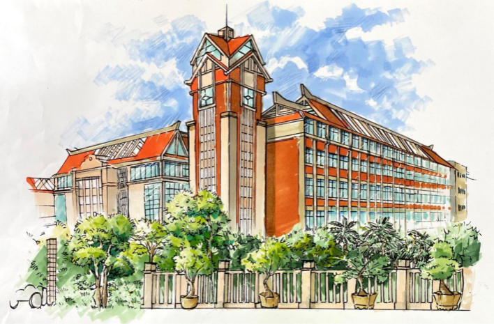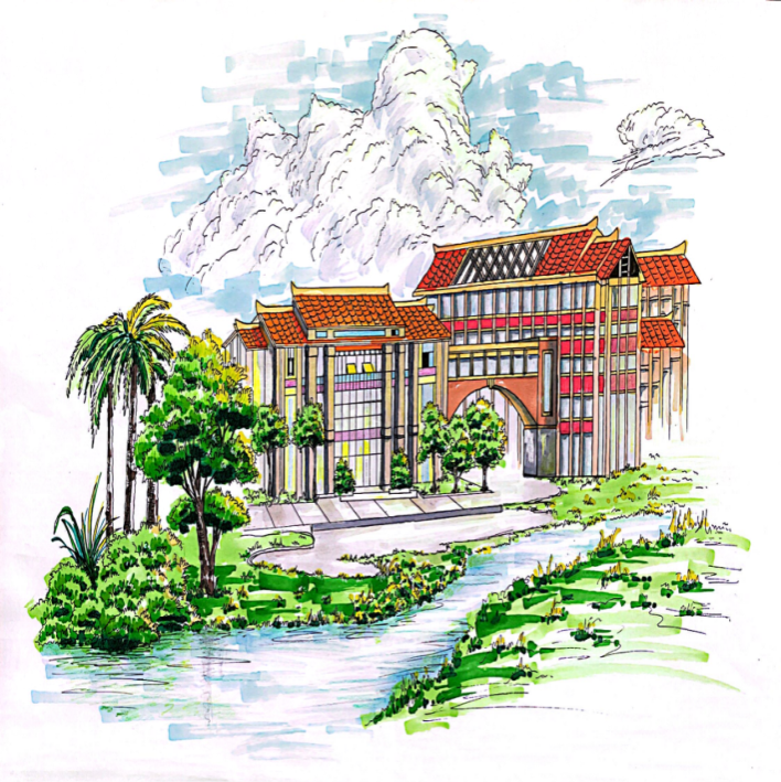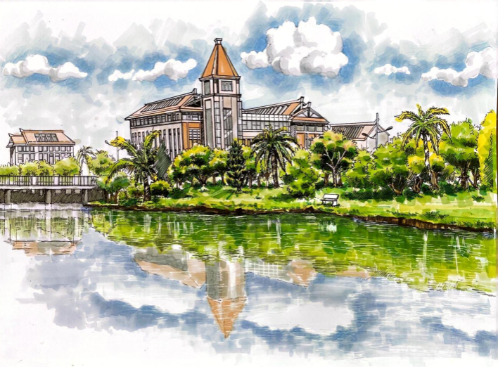 课程从线条、透视、色彩运用等方面入手,为学生展开讲授。随后,课程逐渐深入到环境设计的专业领域,通过对湾大校园书香环境及运河文化景观进行实践创作,锻炼学生们手绘技巧,同时加强学生对学校向海图强的理解和认知。经过一系列的努力和实践,学生们在结课作业中展现出了令人瞩目的进步。他们的手绘作品线条流畅、构图合理、色彩丰富,不仅准确传达了设计理念,还体现了各自独特的艺术风格。