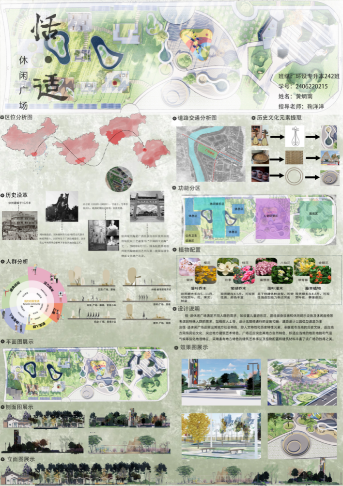 为深化环境设计专业学生对广场及街道景观设计理论与实践结合的理解,环设专升本242班在鞠洋洋老师指导下,举办“运河流韵·街景新篇”主题的广场及街道景观设计课程成果展。