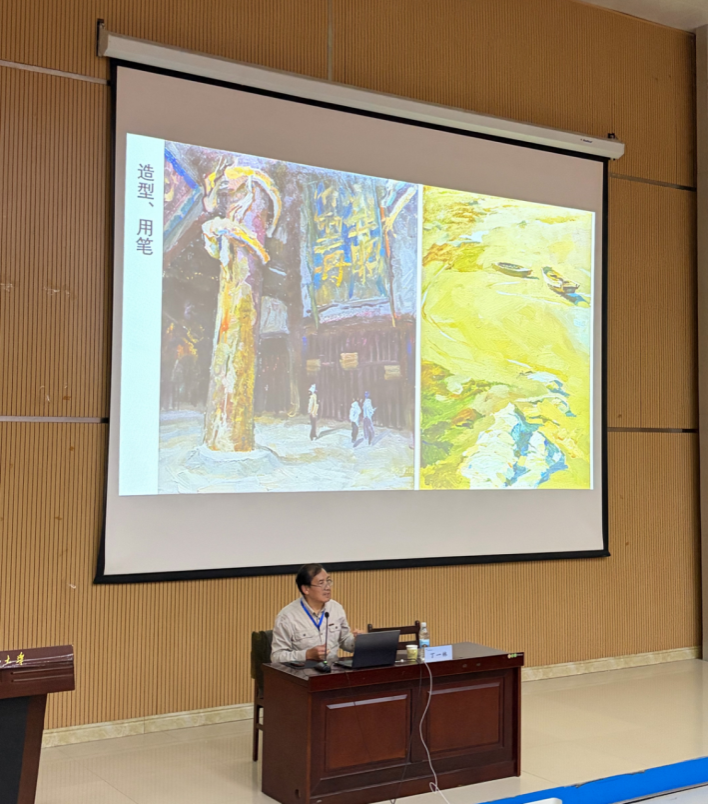 整场讲座图文并茂,理论与实践紧密结合。丁教授展示了大量自己在各地写生的作品,从不同角度诠释了其艺术理念与探索轨迹,令在场师生直观感受到油画风景写生的魅力与深度。本次讲座不仅是一场高水平的学术分享,更是一次生动的艺术启迪。它拓宽了美术专业师生的艺术视野,加深了他们对风景写生创作规律的理解,激发了同学们的创作热情与思考,对提升学院的专业教学与创作氛围起到了积极地推动作用。