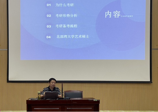 会上周晓峰院长分析我院历年考研情况,从团队优势、学科地位、研究内容等方面介绍了我院艺术硕士专业学位点招生情况,接受同学们的踊跃咨询。王刚副院长从考研形势、招生政策、如何备考等方面为同学们分析考研的意义和重要性,介绍近年考研形势变化和报考注意事项。他说,考研给同学们的未来发展多了一份选择,同学们要正确认识、认真准备、明确定位、科学抉择、刻苦学习、勇于挑战自己。