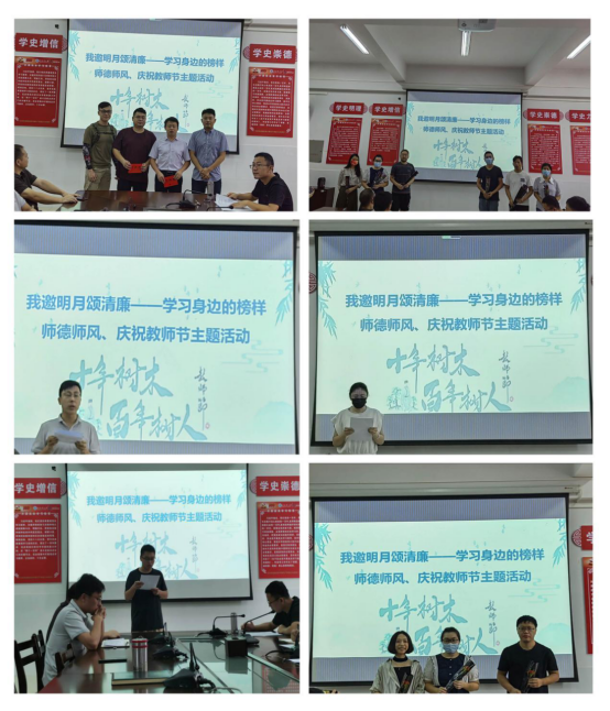 “我邀明月颂清廉——学习身边的榜样”主题活动是我院扎实推进师德师风建设和“清廉湾大”建设,的系列主题活动之一。活动增强了全体教师教书育人的光荣感、廉洁从教的责任感。教师们决心牢记为党育人、为国育才使命,涵养清廉严谨的师德师风,当好学生的引路人,以“优良党风、清明校风、清正教风、清新学风”迎接党的二十大召开。
