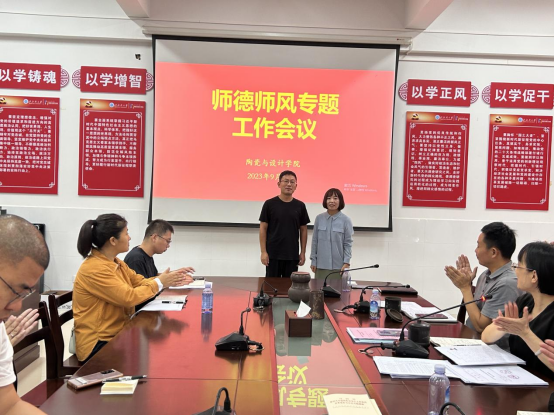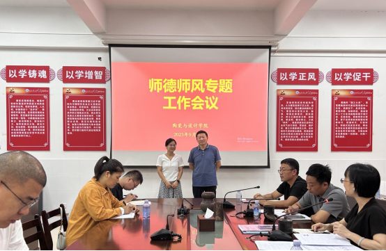 9月28日上午,陶瓷与设计学院在3号教学楼301会议室召开师德师风专题工作会议,学院全体教职工参会。