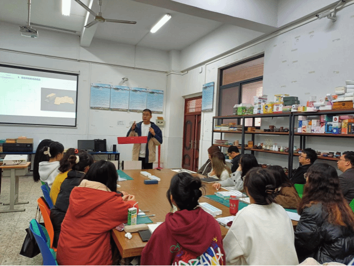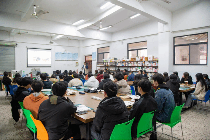 课堂上,授课教师周作好讲授课程思政示范课程“包装设计”课程导论内容,为学生开启本学期新课程。周老师润物细无声地把工匠精神、绿色发展、设计伦理、中华优秀传统文化等思政元素融入到专业教育中。学生学习状态良好,课堂井然有序。陆副校长和教学督导团队在课堂上仔细听课、认真记录,现场查看教师教学和学生课堂学习情况。