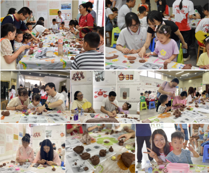 纵使当天夏雨不断,也难掩家长和小朋友们的创作热情,各个家庭在现场互相分享创作的喜悦。此次亲子研学活动让家长和小朋友们对钦州坭兴陶有了更全面的认识,同时也提高了小朋友的动手能力,加强了父母与孩子的情感交流。