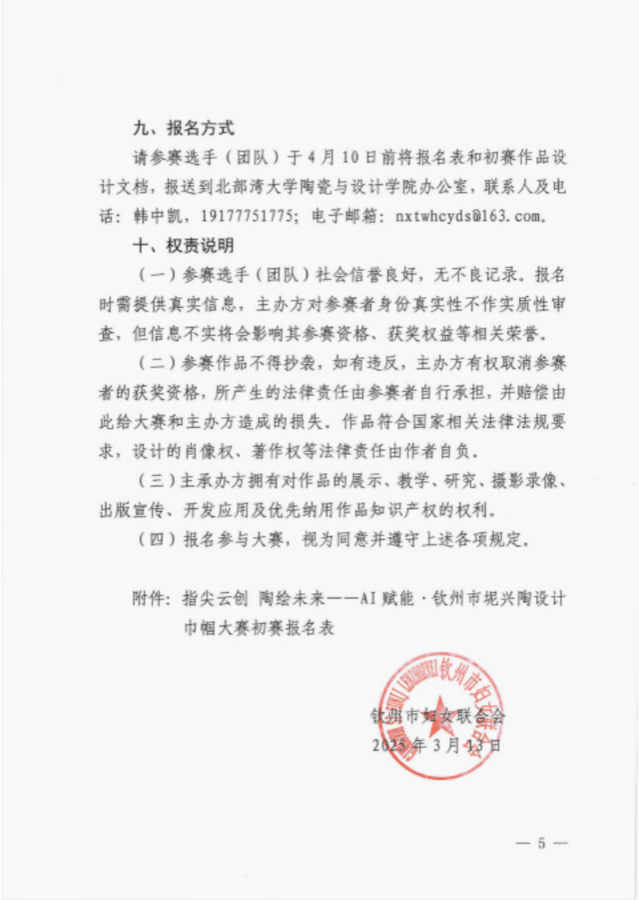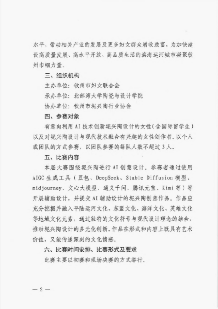 陶瓷与设计学院与钦州市妇女联合会关于举办“指尖云创陶绘未来——AI赋能·钦州市女性坭兴陶文化创意设计大赛”的通知