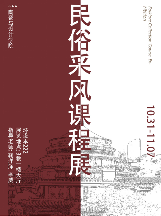 本次民俗采风课程展将专业课程与实践能力、紧密结合,旨在培养学生在民俗采风过程中观察、感悟和体会以及绘图表达的能力和手绘实践设计能力,为后续专业课程学习夯实的创作基础,提升艺术涵养,厚植爱国情怀。