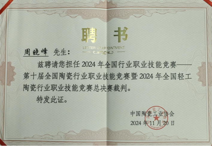 我院教师赵绘娟经过层层选拔和比拼,最终拿到了全国二等奖,被授予全国陶瓷行业技术能手称号。