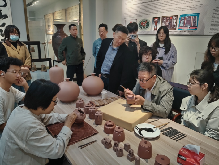 直至12:00,本次坭兴陶主题交流活动圆满落幕。此次活动不仅让师生近距离领略了坭兴陶雕刻艺术的独特魅力,更深化了大家对篆刻与陶刻交融艺术的理解,为我院陶艺专业的教学与创作注入了新的灵感。
