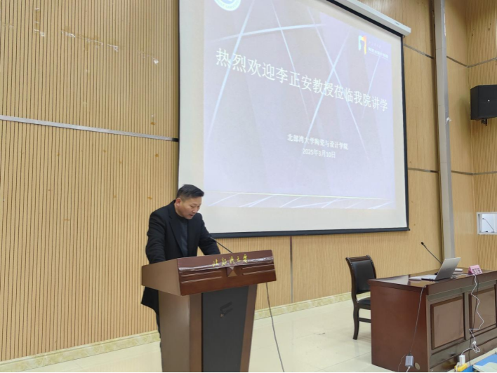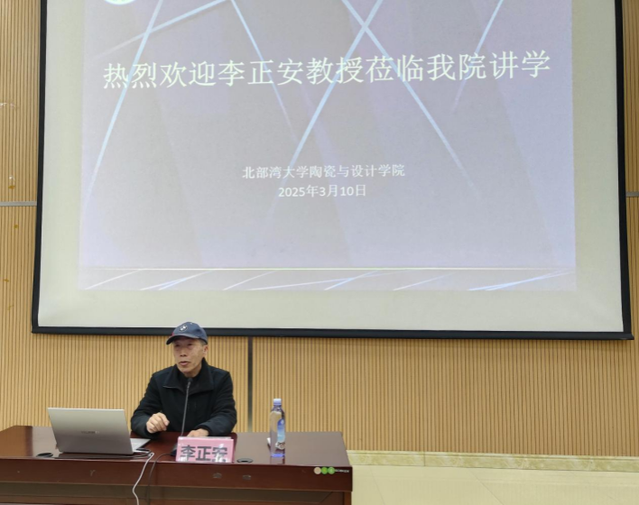 2025年3月10日,陶瓷与设计学院举办了一场高水平的学术讲座。清华大学美术学院教授、博士生导师李正安应邀为学院师生作题为《品陶论瓷析设计》的专题报告,深入探讨陶瓷艺术的设计理念与创作精髓。讲座由学院院长周晓峰主持,吸引了近400名师生及钦州市行业专家到场聆听。