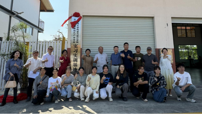 10月11日上午,北部湾大学陶瓷与设计学院、北部湾陶瓷现代产业学院实习实训基地揭牌仪式在钦州市登峰陶艺有限公司举行。校党委常委、副校长陆衡,陶瓷与设计学院院长周晓峰,钦州市坭兴陶行业协会会长周三平,钦州市登峰陶艺有限公司总经理吴莹,中国工艺美术大师李人帡,广西工艺美术大师王宝祥及我院产品设计专业师生,公司相关工作人员等80多人参加揭牌仪式。揭牌仪式由北部湾陶瓷现代产业学院副院长黄辉主持。