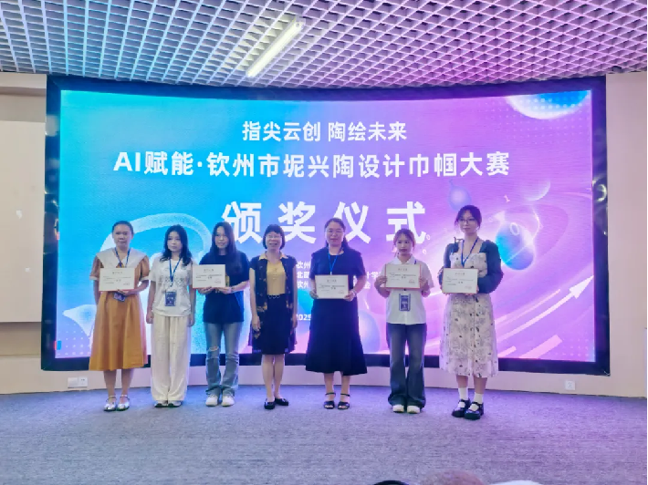 5月22日,由钦州市妇联主办、北部湾大学陶瓷与设计学院承办、钦州市坭兴陶行业协会协办的“指尖云创 陶绘未来——AI赋能·钦州市坭兴陶设计巾帼大赛”在北部湾大学隆重举行路演决赛及颁奖仪式。大赛共评选出一等奖5名、二等奖10名、三等奖15名及优秀奖20名。